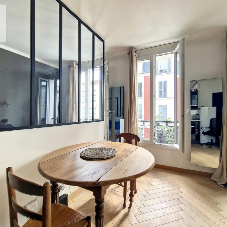 L’appartement se compose d’une agréable pièce de vie avec cuisine ouverte aménagée et équipée, d’un coin nuit distinct séparé par une verrière de type atelier apportant charme et fonctionnalité, ainsi que d’une salle d’eau avec WC. L’ensemble offre un cadre de vie confortable, lumineux et bien pensé, dans un quartier recherché.